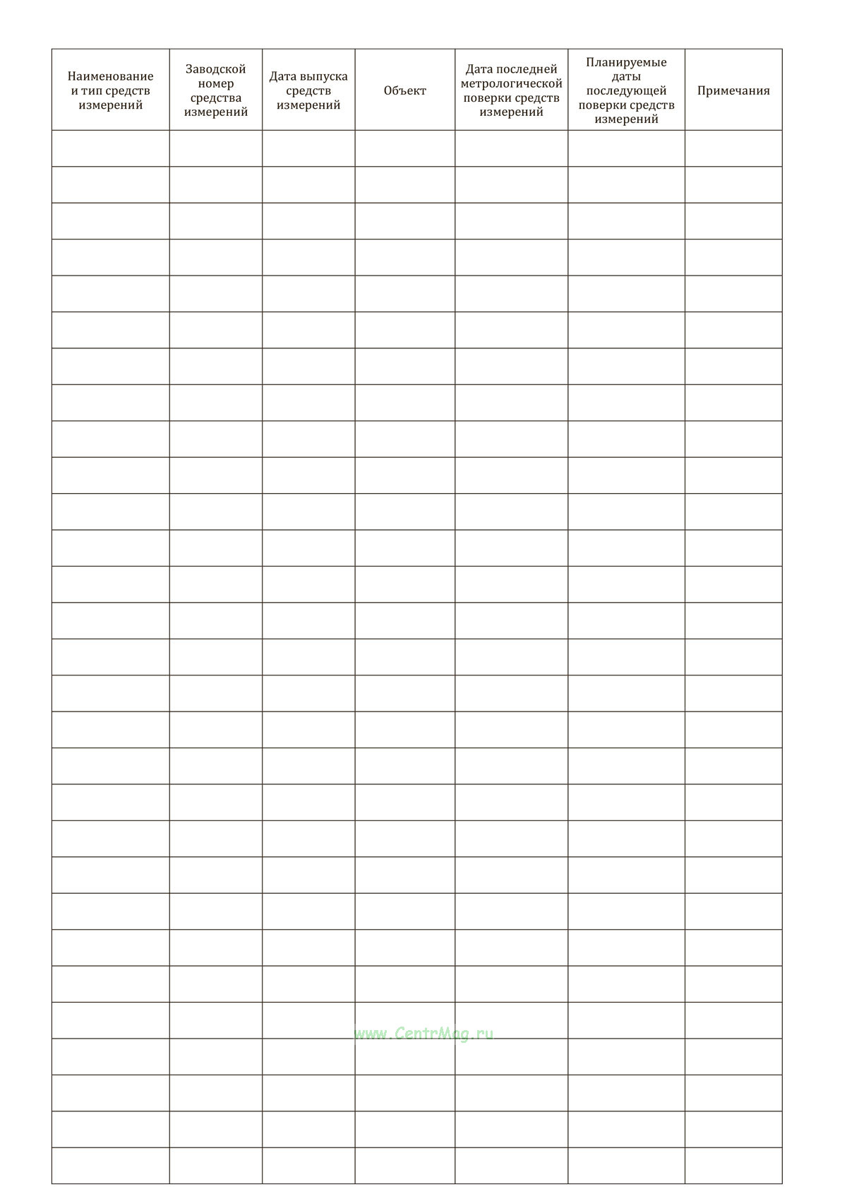 Журнал учета средств измерений имеет графы: