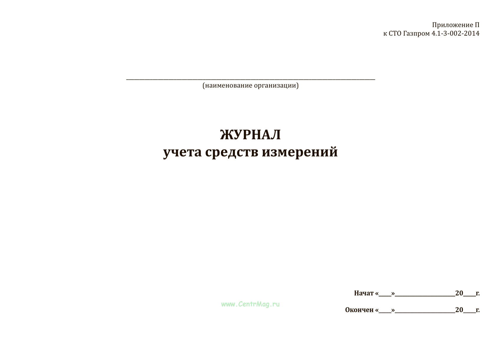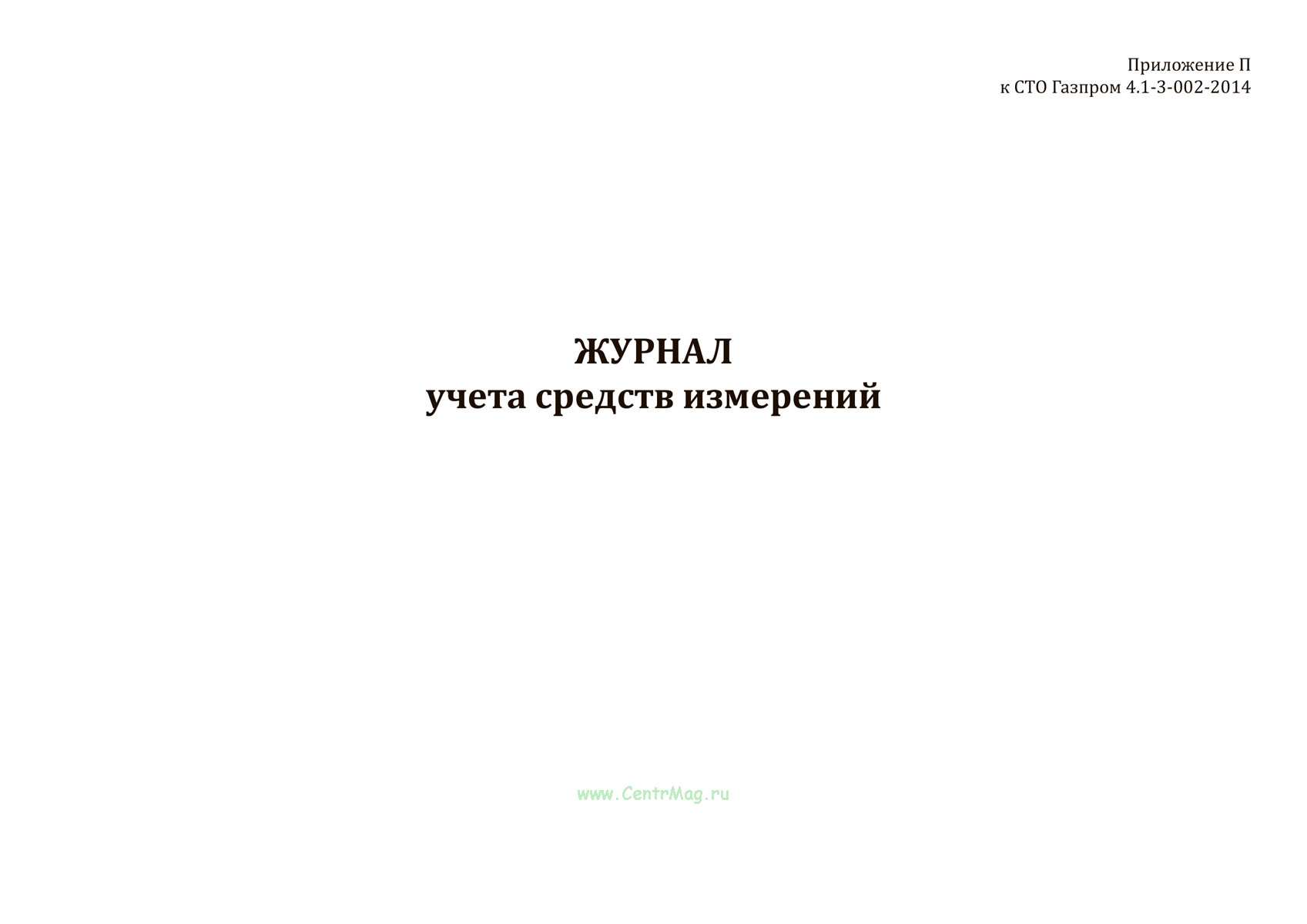 Форма Журнала учета средств измерений соответствует Приложению П к распоряжению ОАО "Газпром" от 14 августа 2014 г. № 193