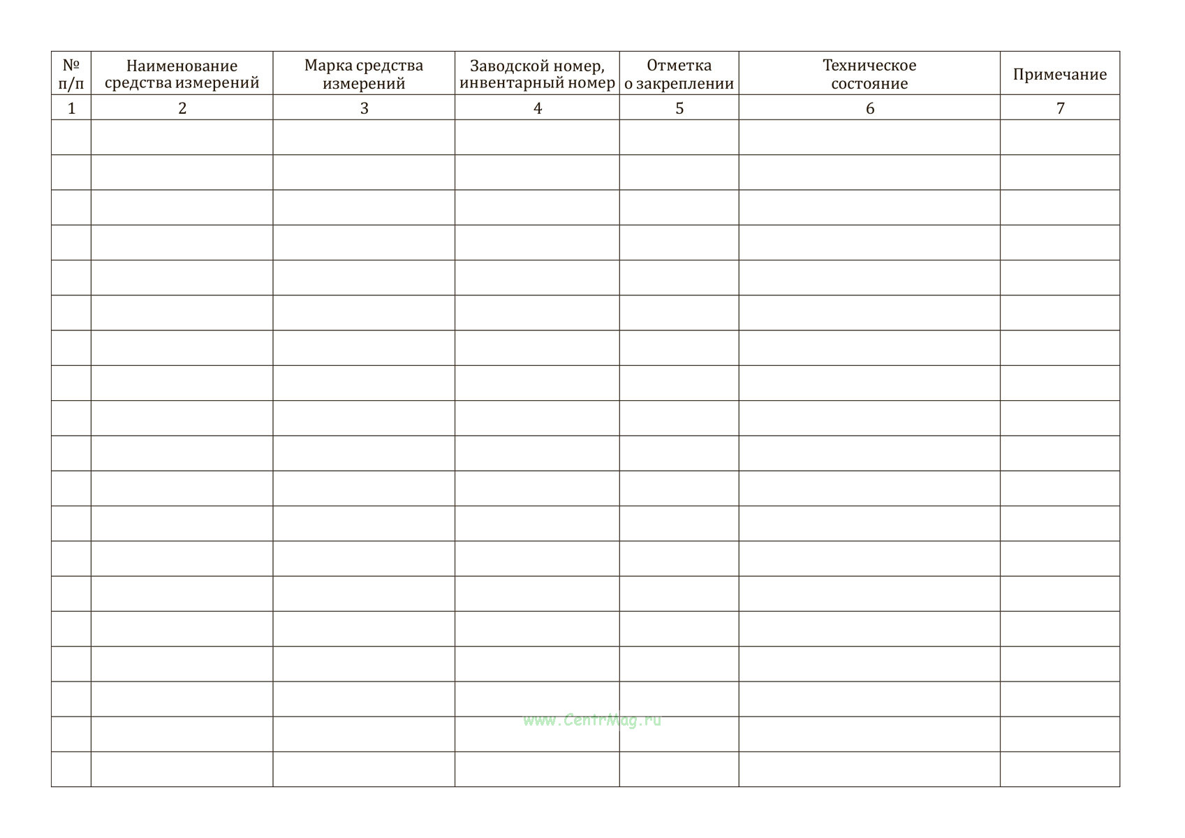 Журнал учета средств измерений имеет графы:
