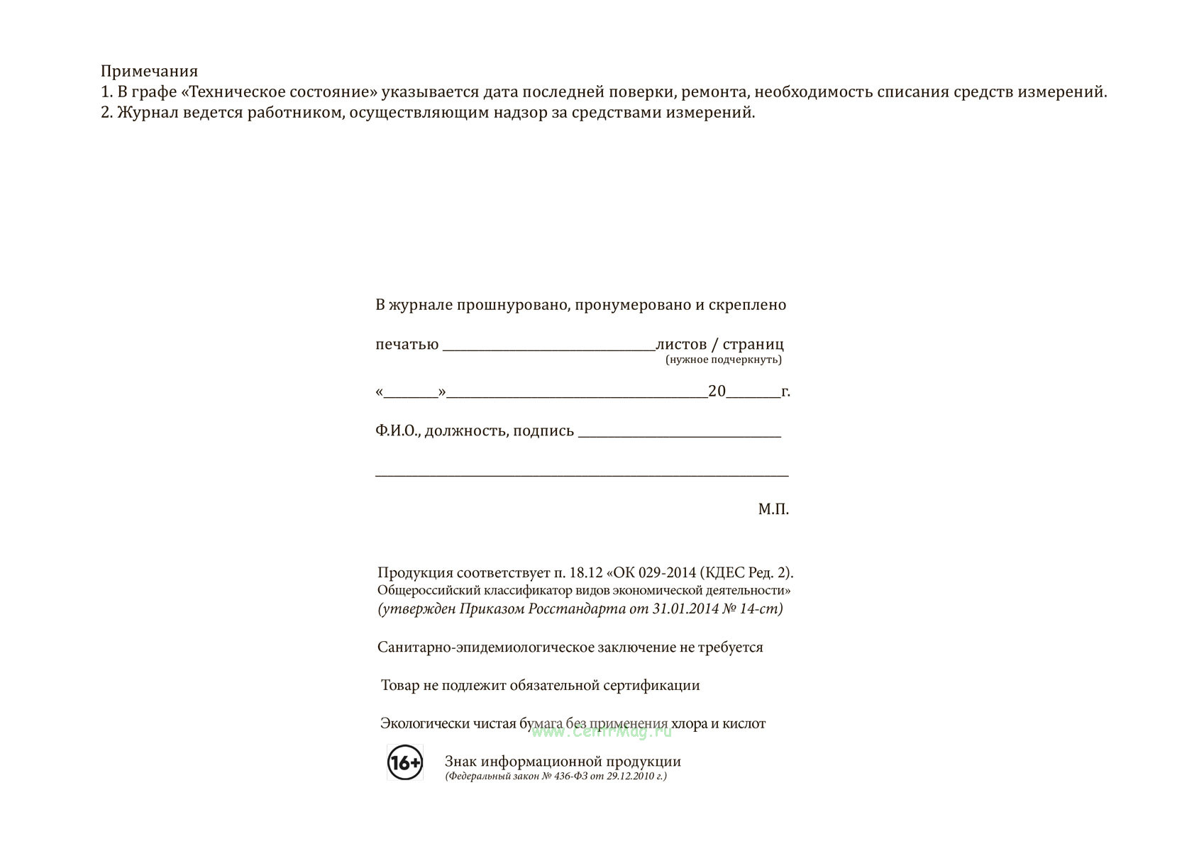 Вы получаете печатную продукцию прошнурованной и c местом для вашей печати в соответствии с действующими нормативными документами: