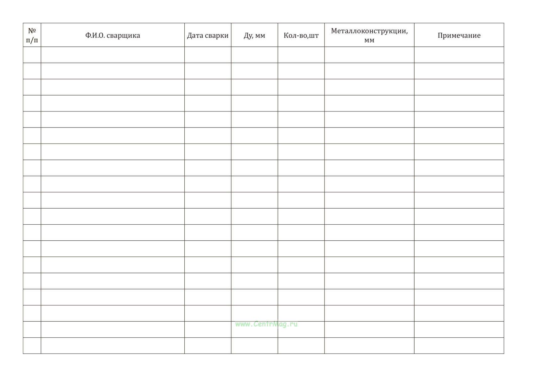 Журнал учета сварки стыков и металлоконструкций имеет графы: