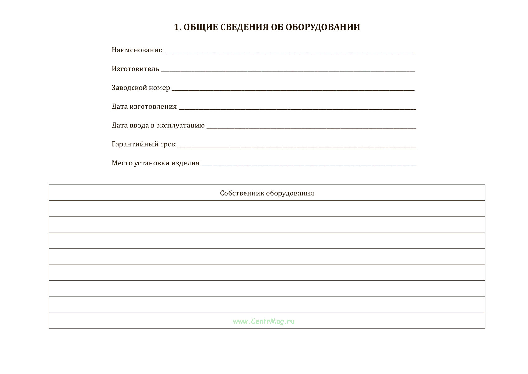 1. Общие сведения об оборудовании