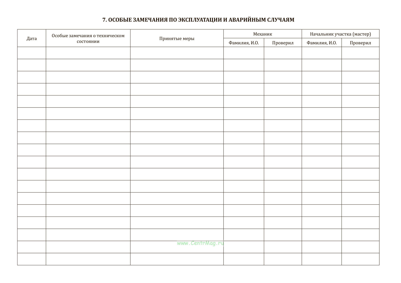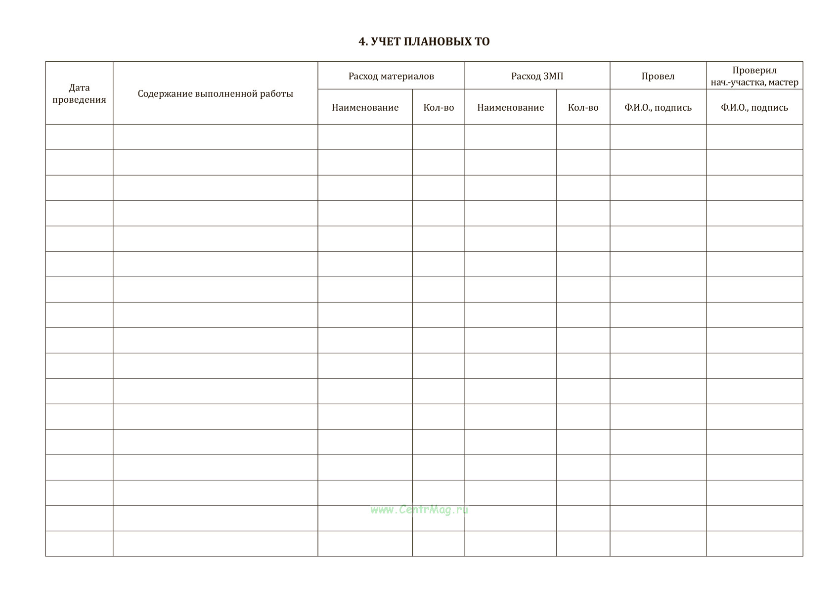 Журнал учета технического обслуживания и ремонта имеет графы: