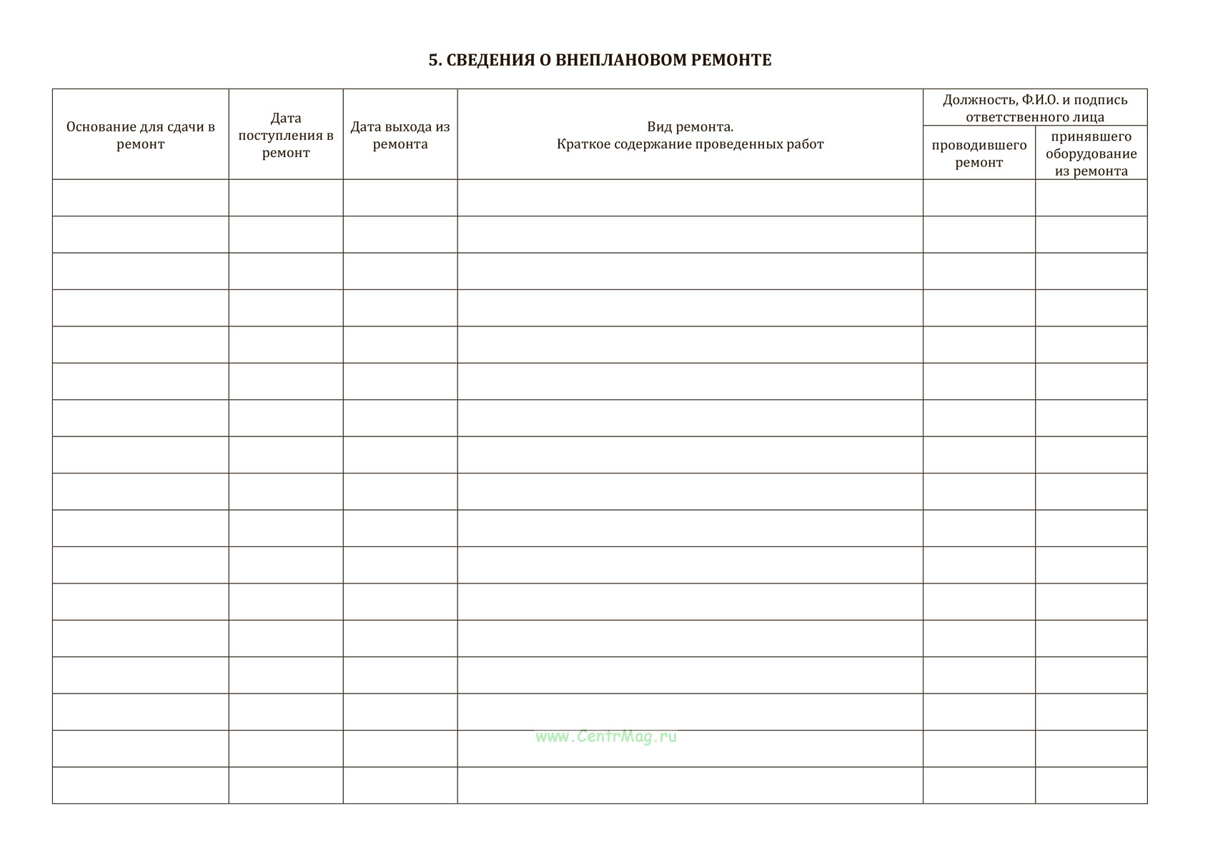 5. Сведения о внеплановом ремонте