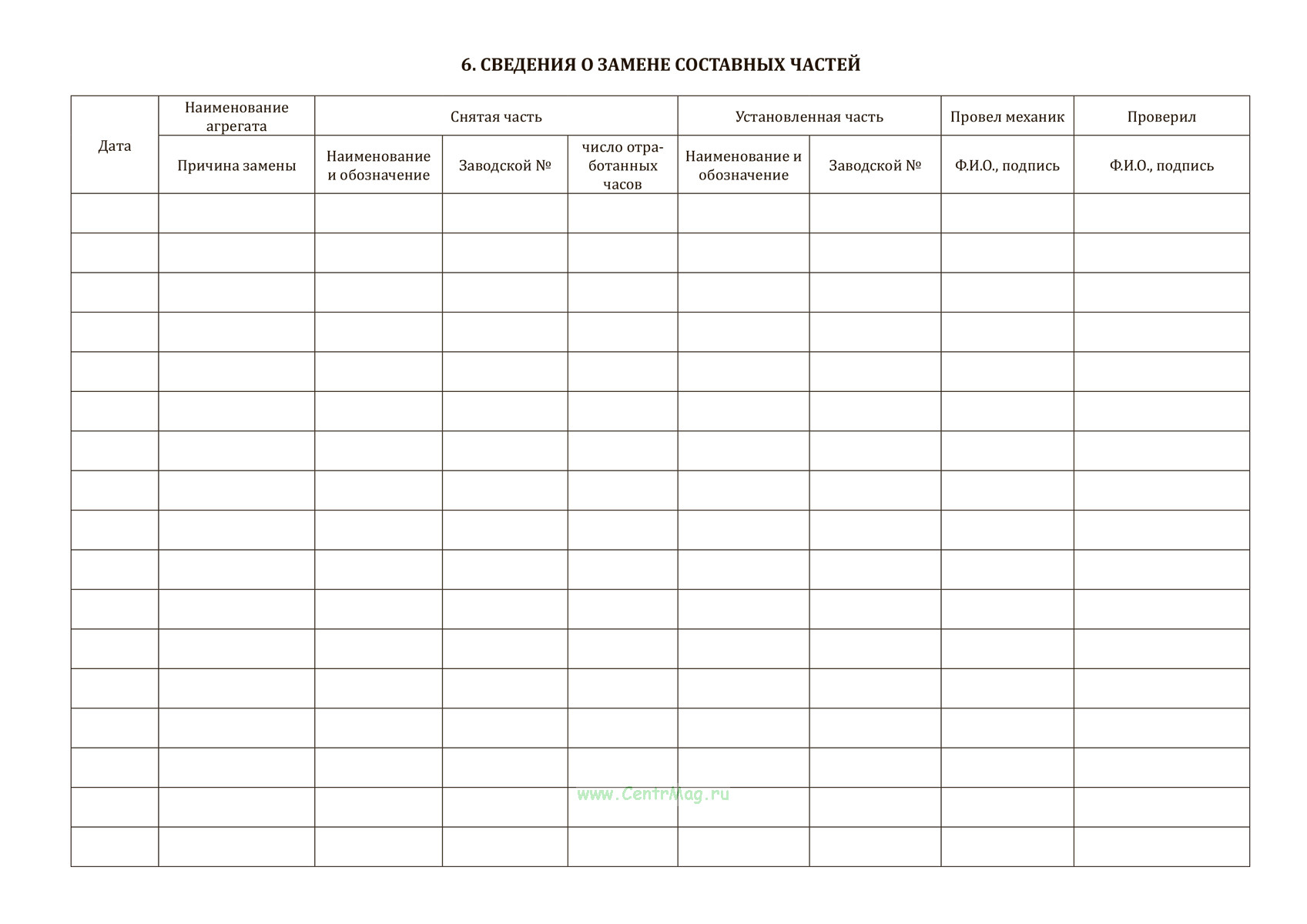 6. Сведения о замене составных частей