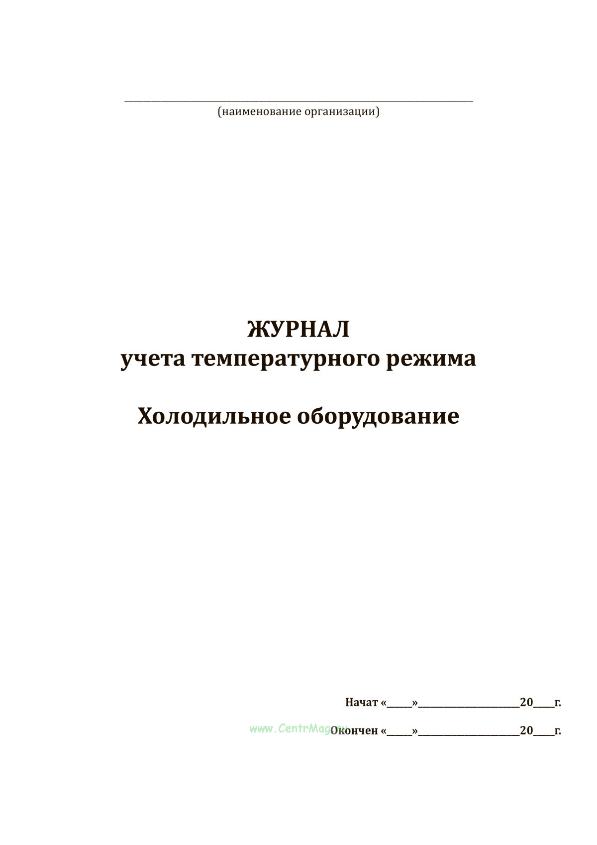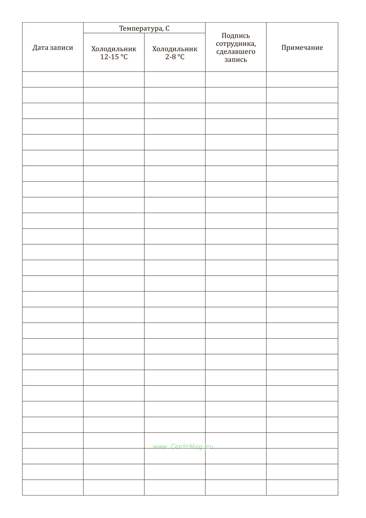 Журнал учета температурного режима. Холодильное оборудование имеет графы: