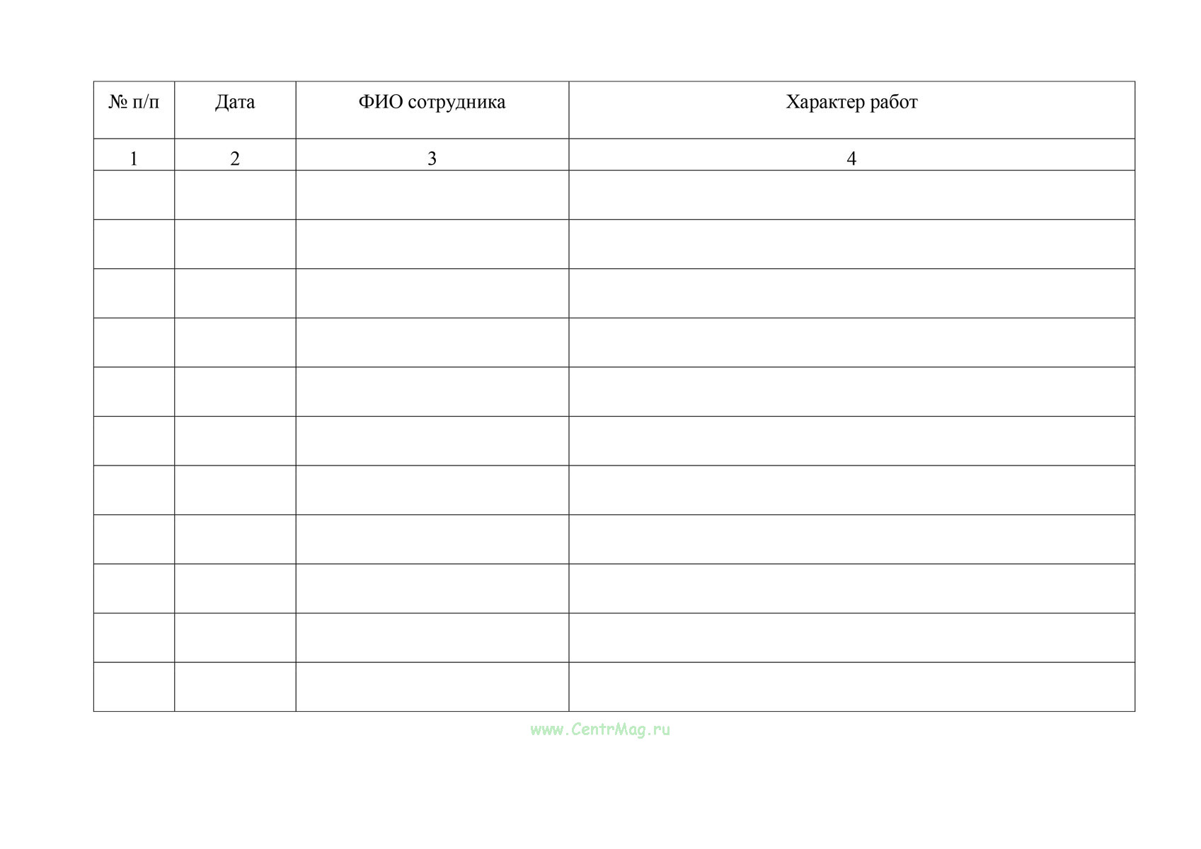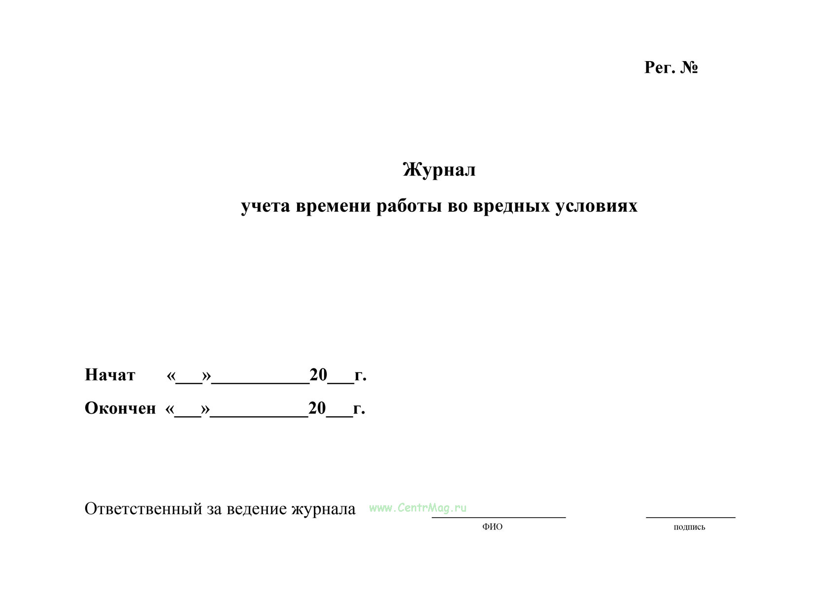 Журнал учета времени работы во вредных условиях