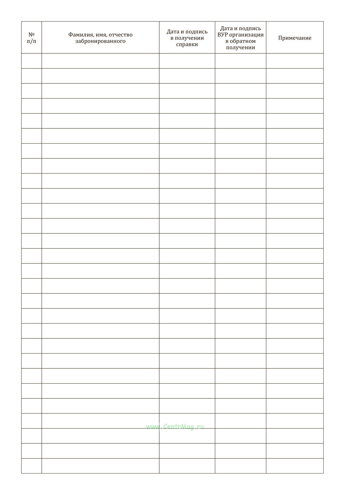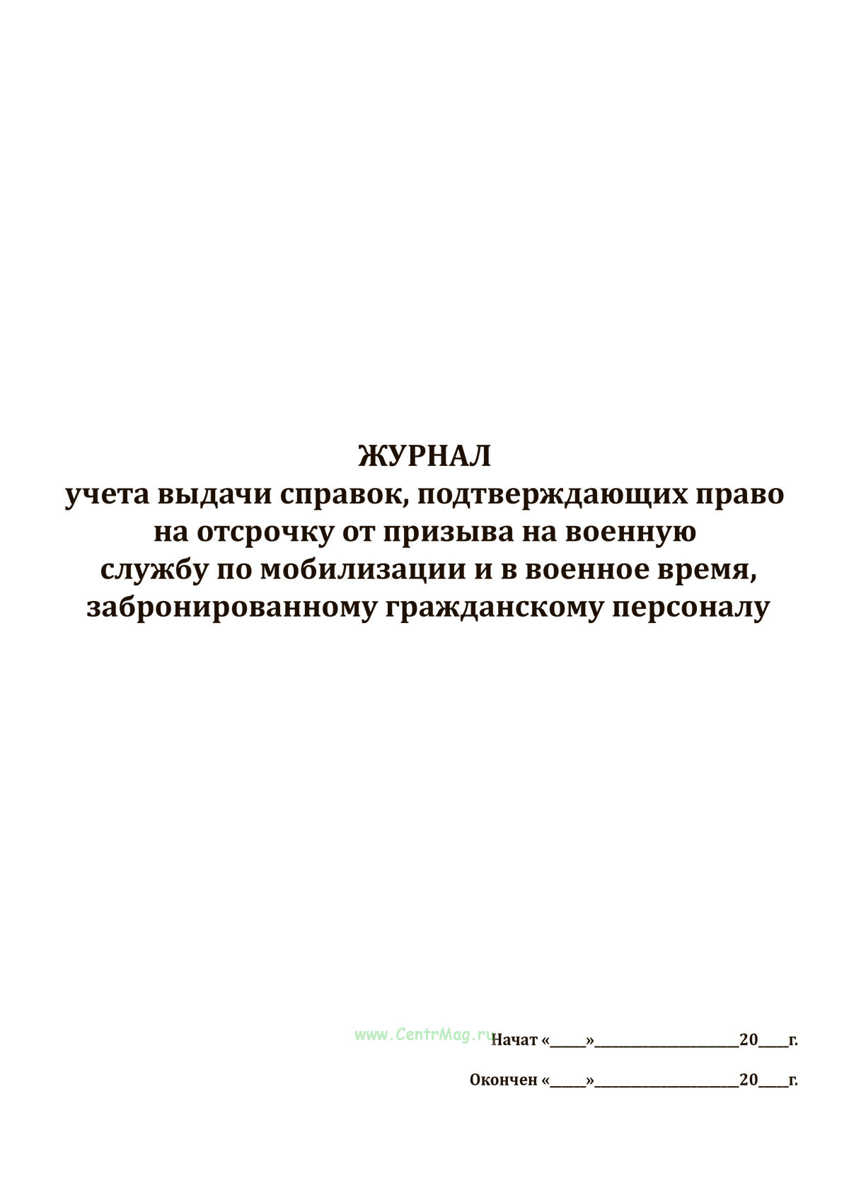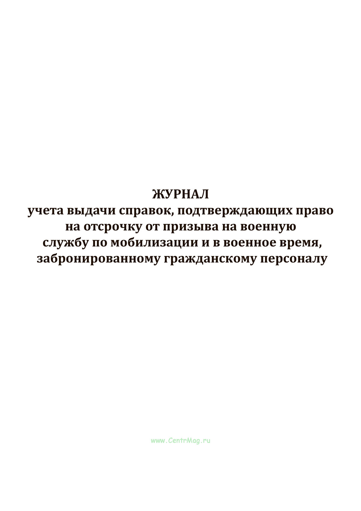 Журнал учета выдачи справок, подтверждающих право на отсрочку от призыва на военную службу по мобилизации и в военное время, забронированному гражданскому персоналу имеет графы: