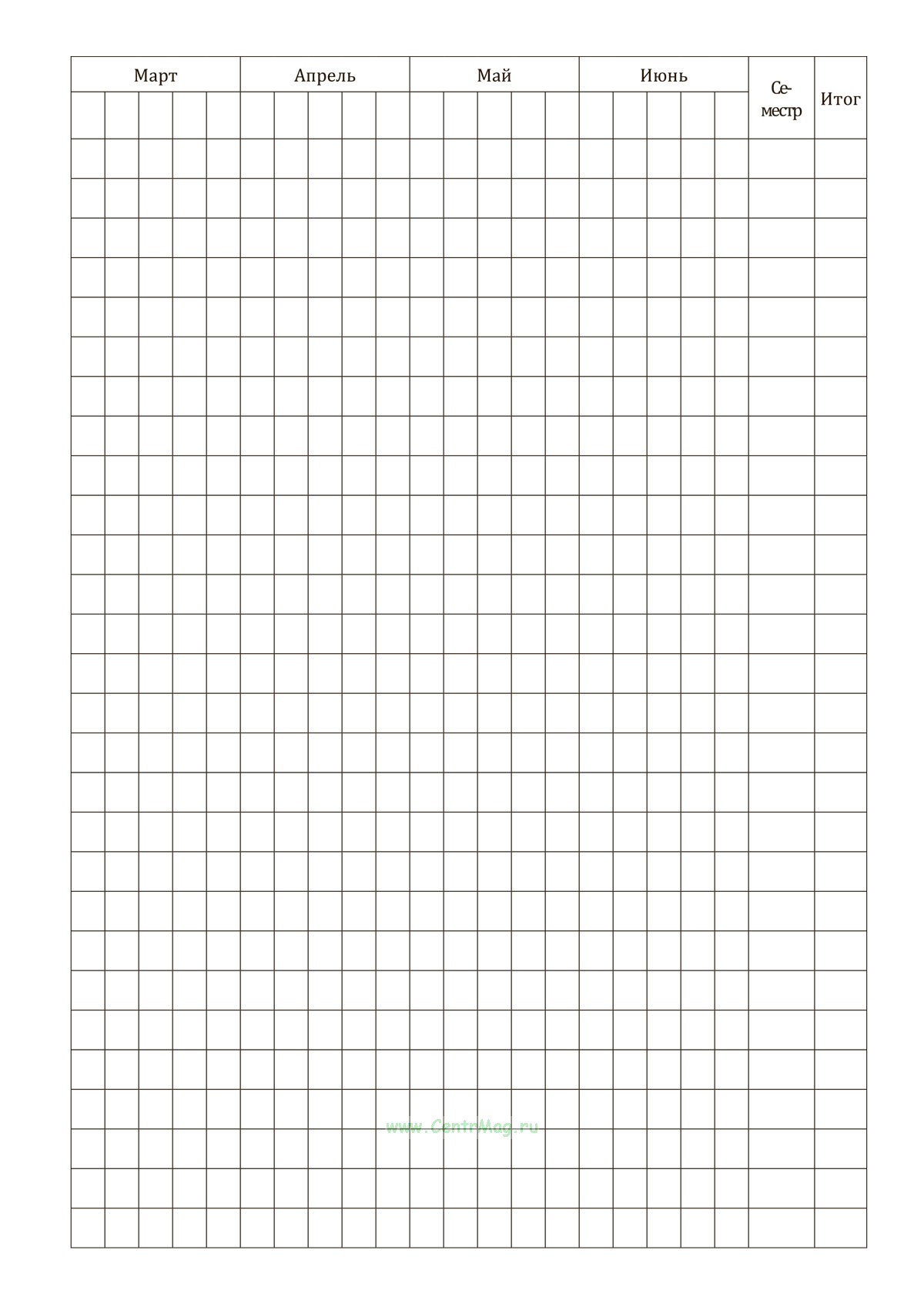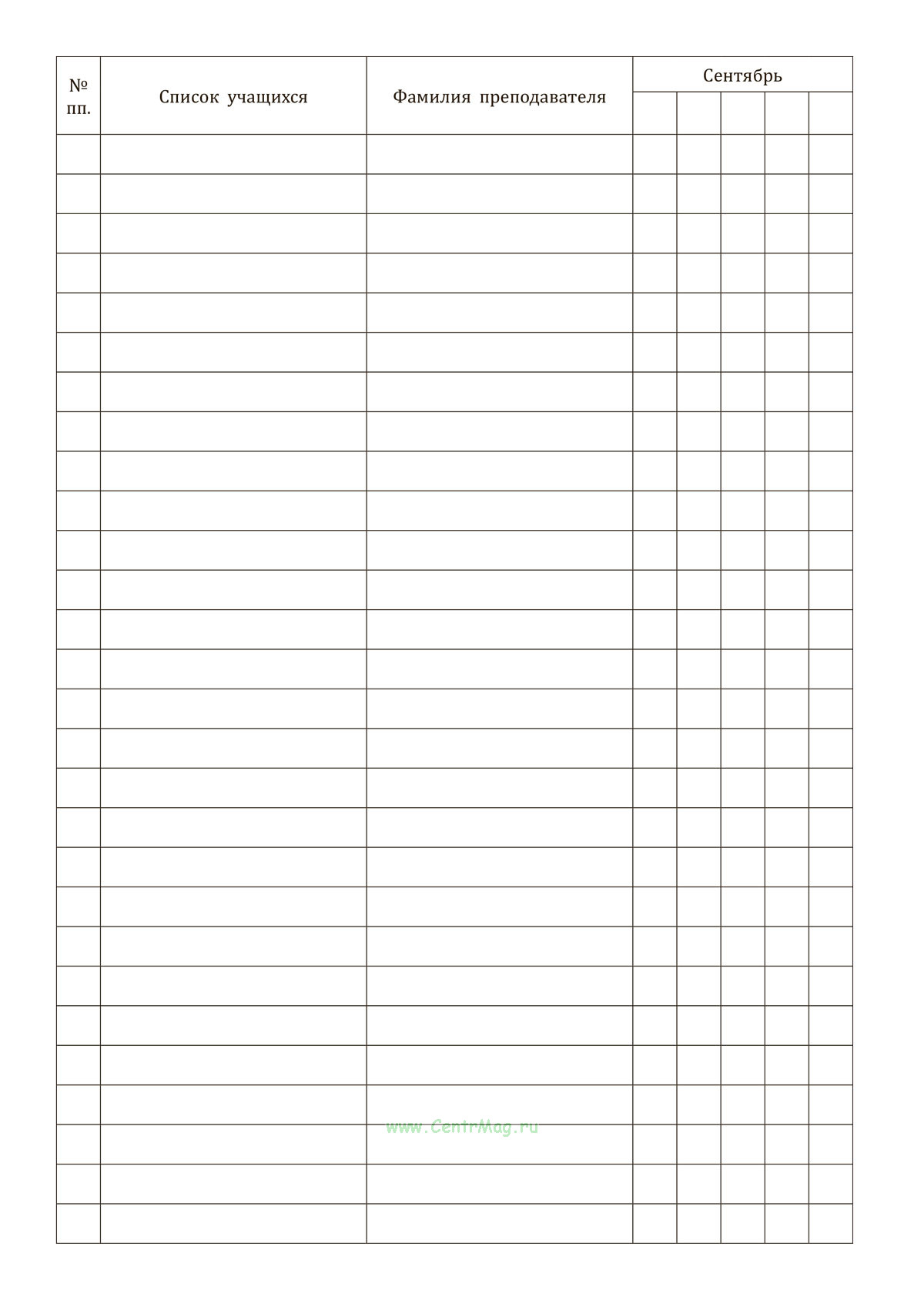 Журнал применяется для учета посещаемости и успеваемости слушателей курсов, фиксации результатов обучения по месяцам и семестрам, а также для контроля образовательного процесса и подведения итогов обучения.