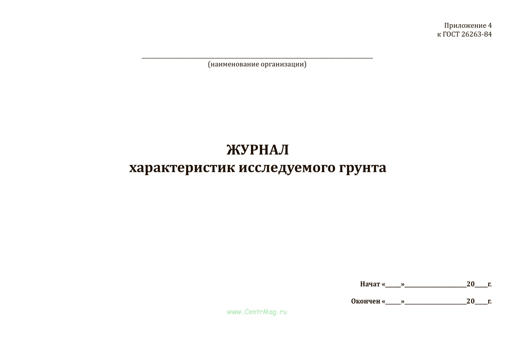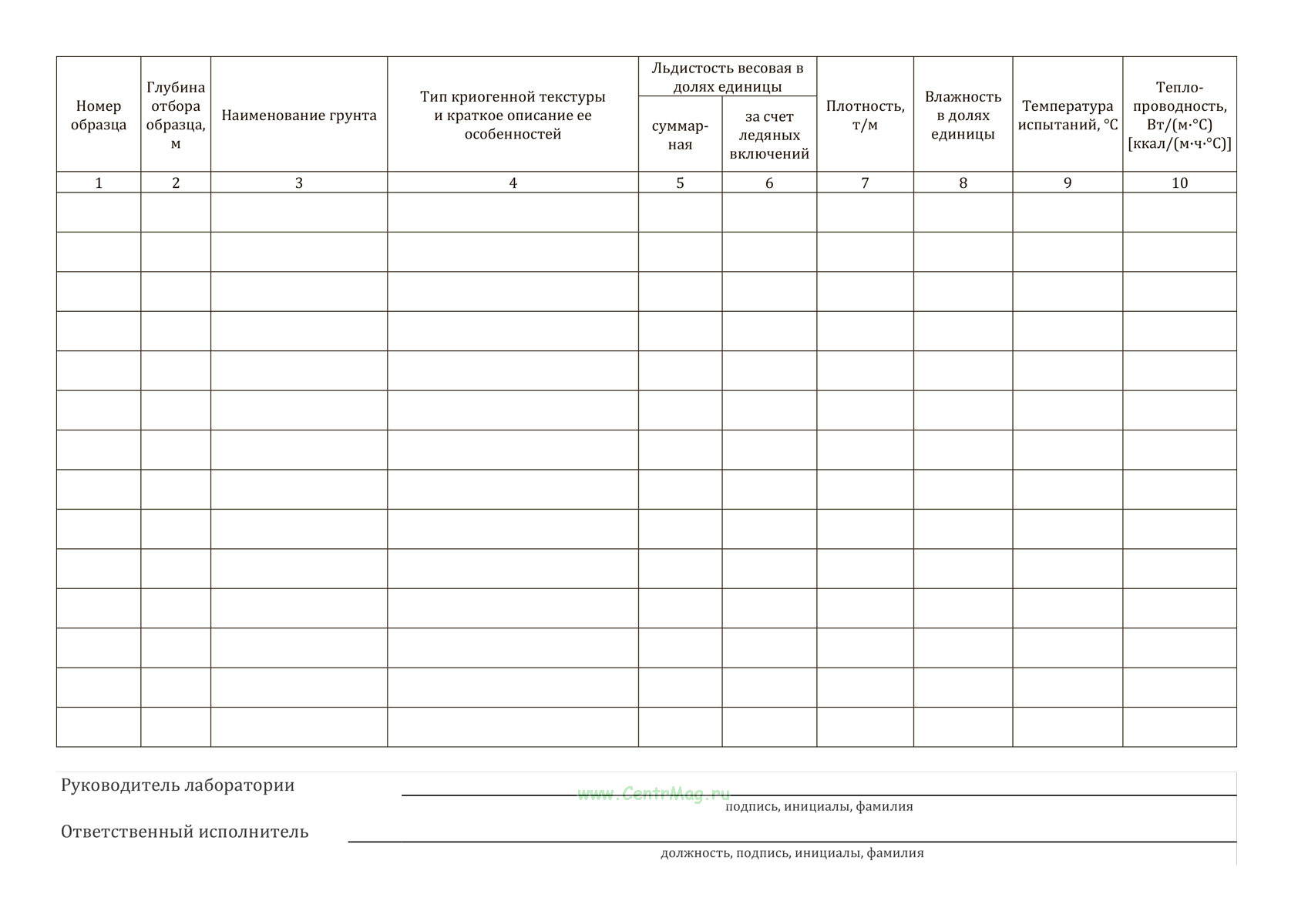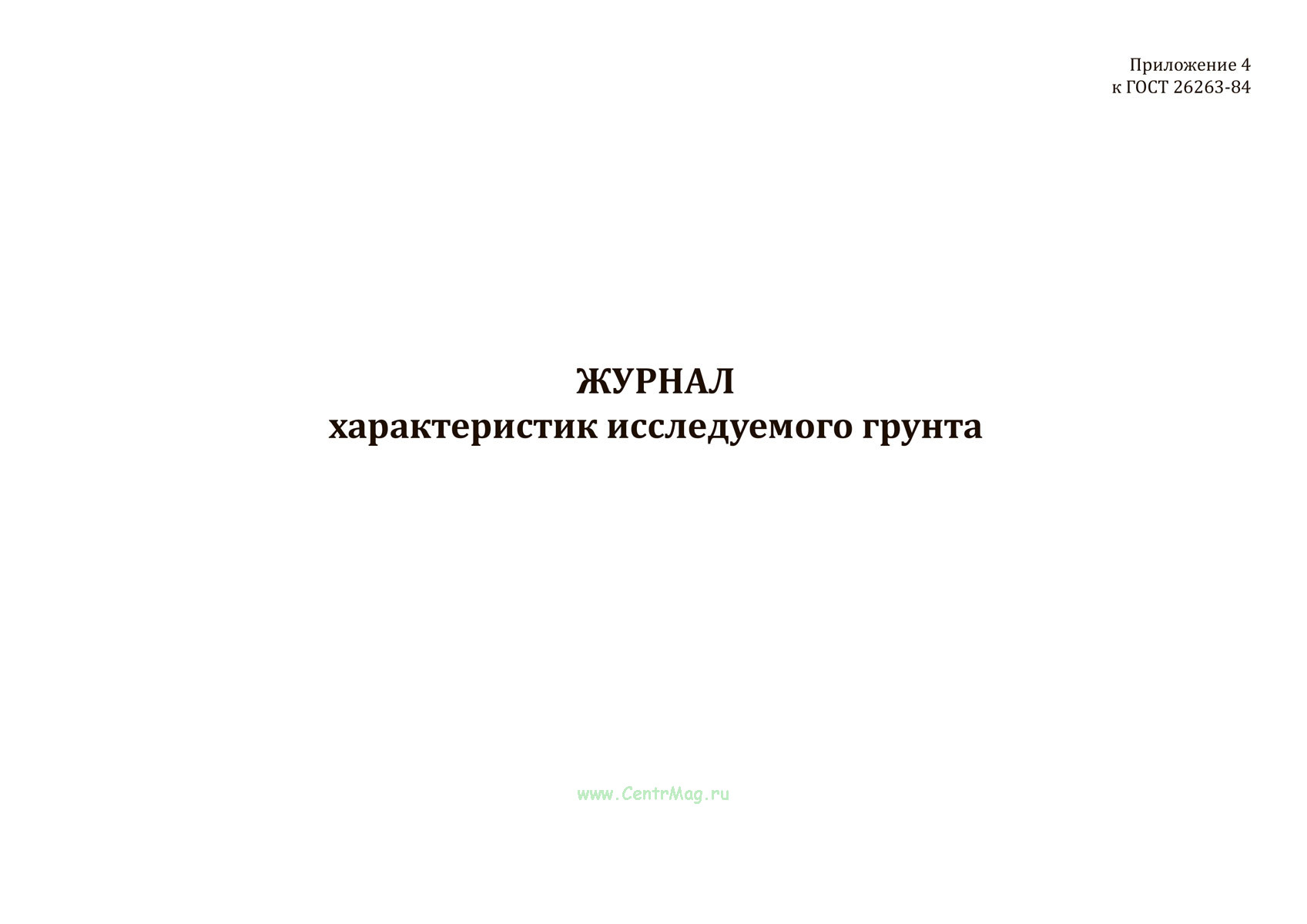 Форма журнала характеристик исследуемого грунта соответствует Приложению 4 к ГОСТ 26263-84. Грунты. Метод лабораторного определения теплопроводности мерзлых грунтов