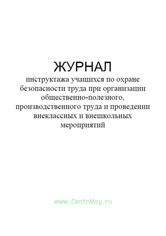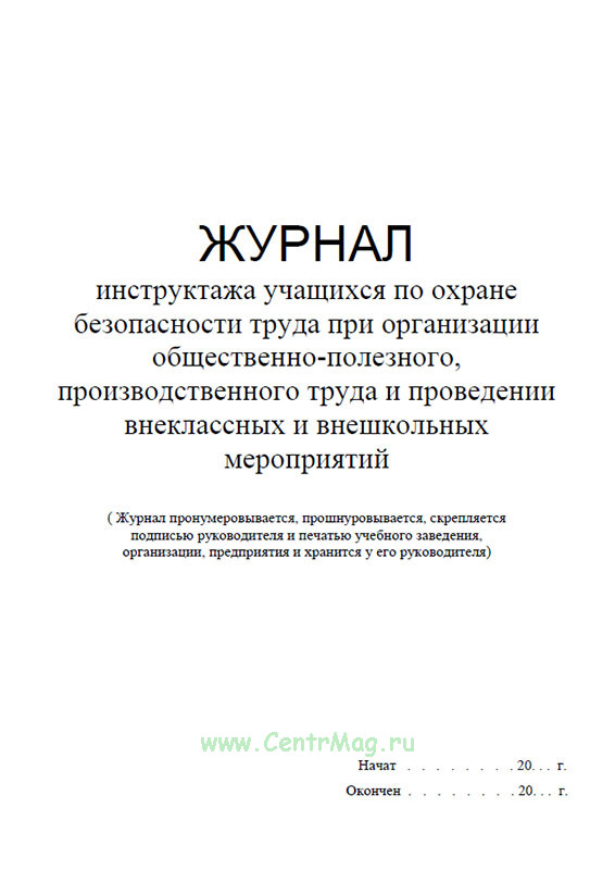 Журнал инструктажа учащихся по охране безопасности труда заполняют в обязательном порядке при организации общественно-полезного, производственного труда и проведении внеклассных и внешкольных мероприятий.