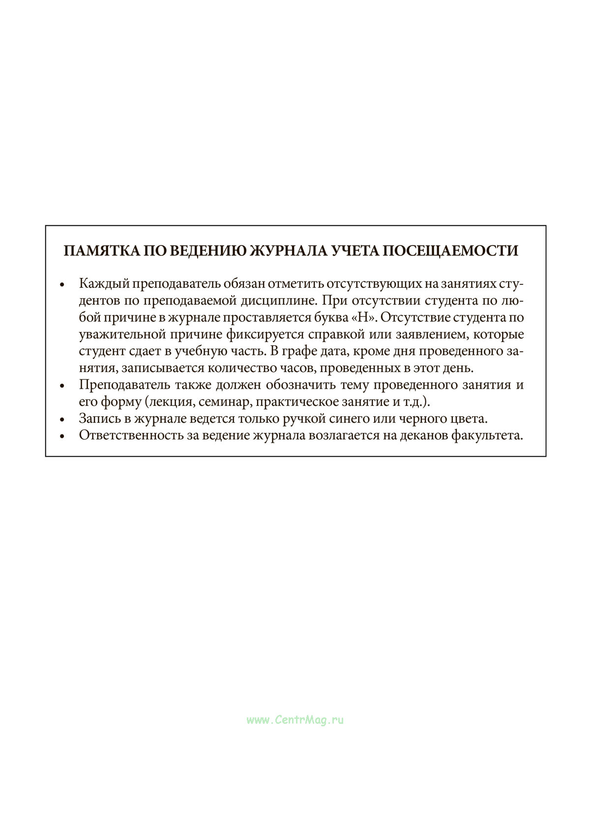 - Ответственность за ведение журнала возлагается на деканов факультета.