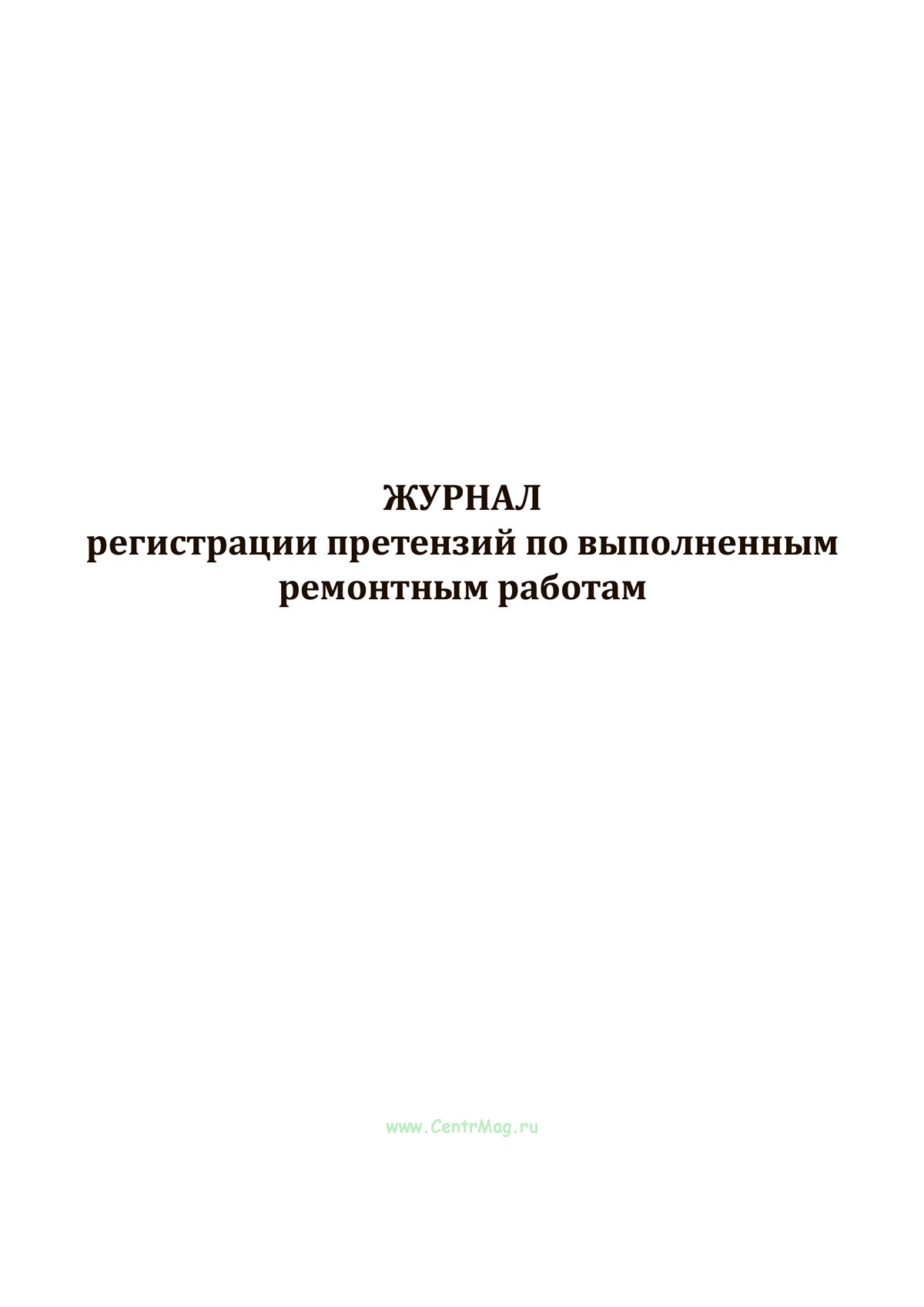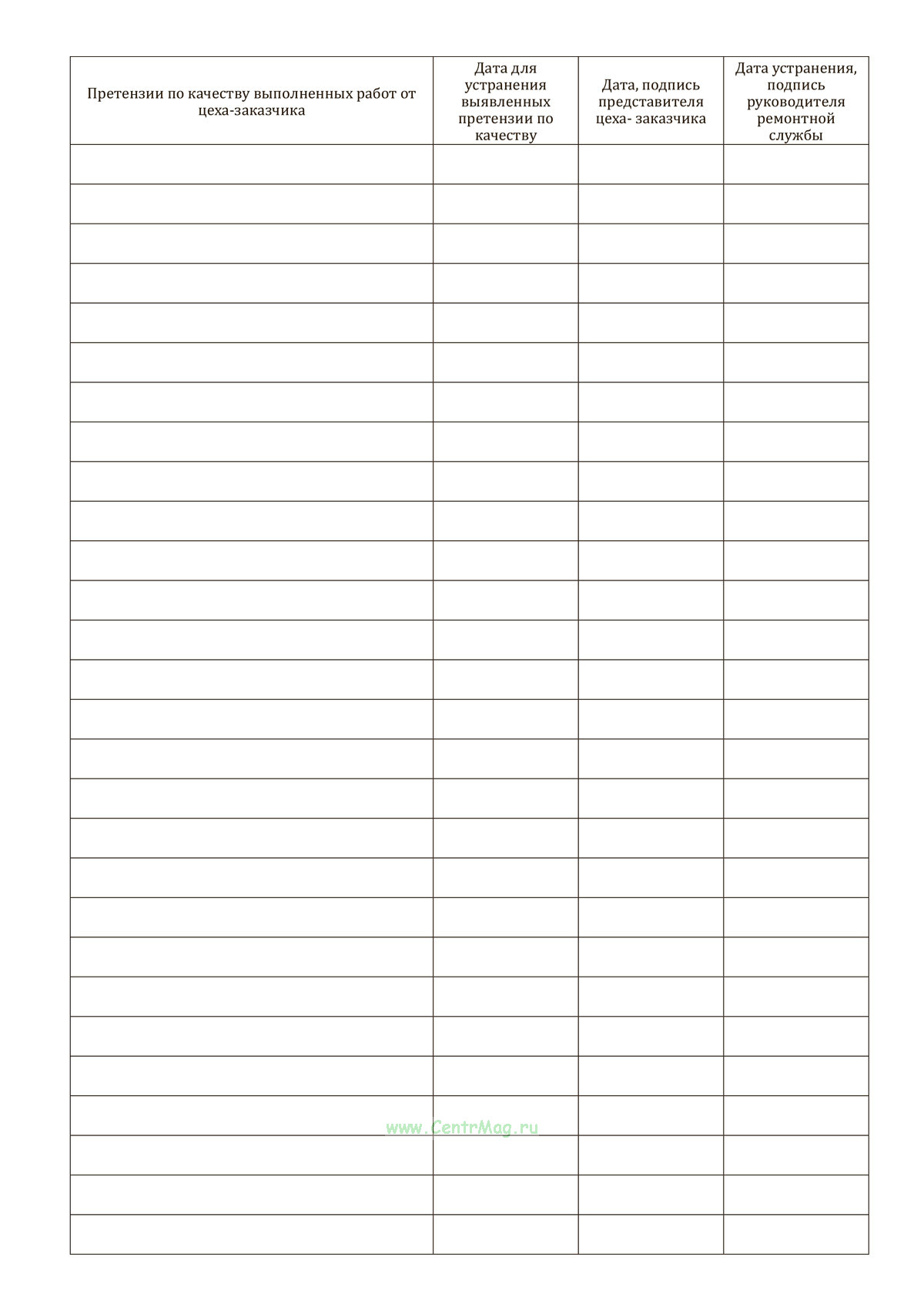 Журнал регистрации претензий по выполненным ремонтным работам имеет графы: