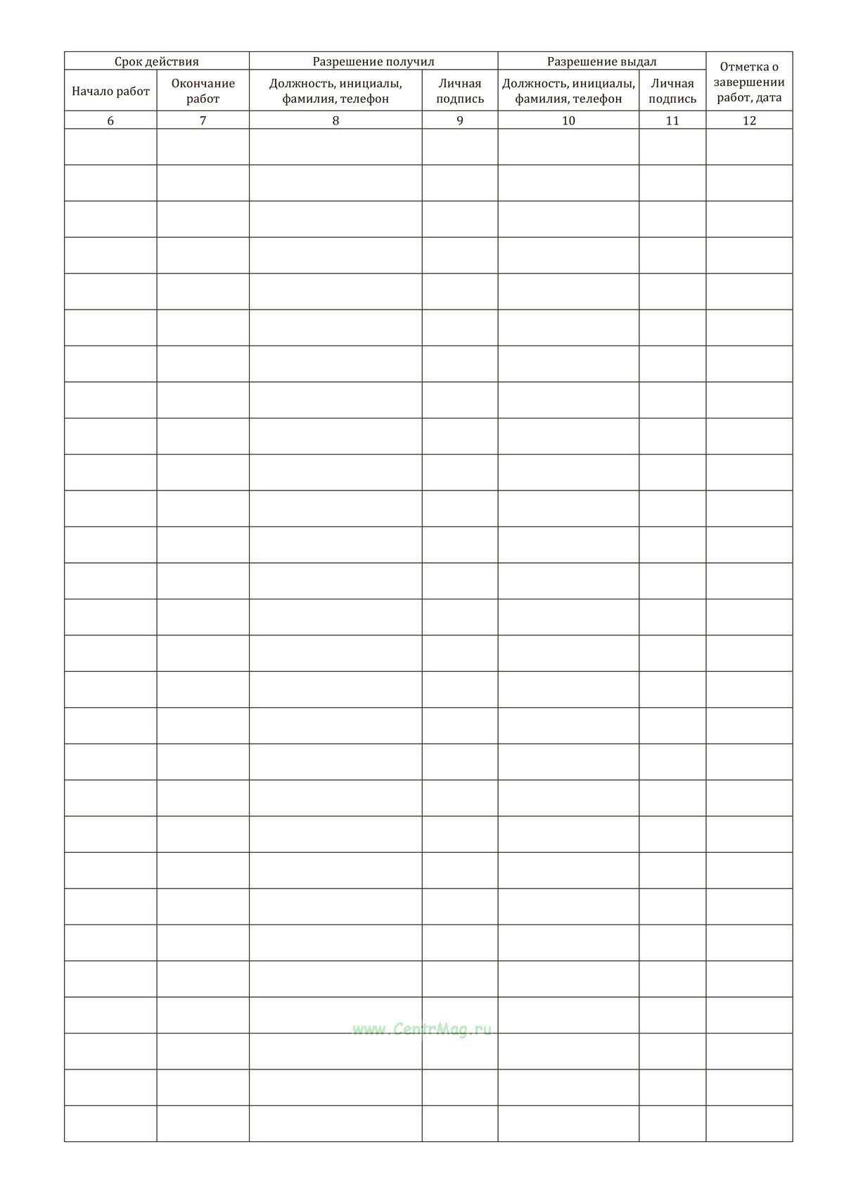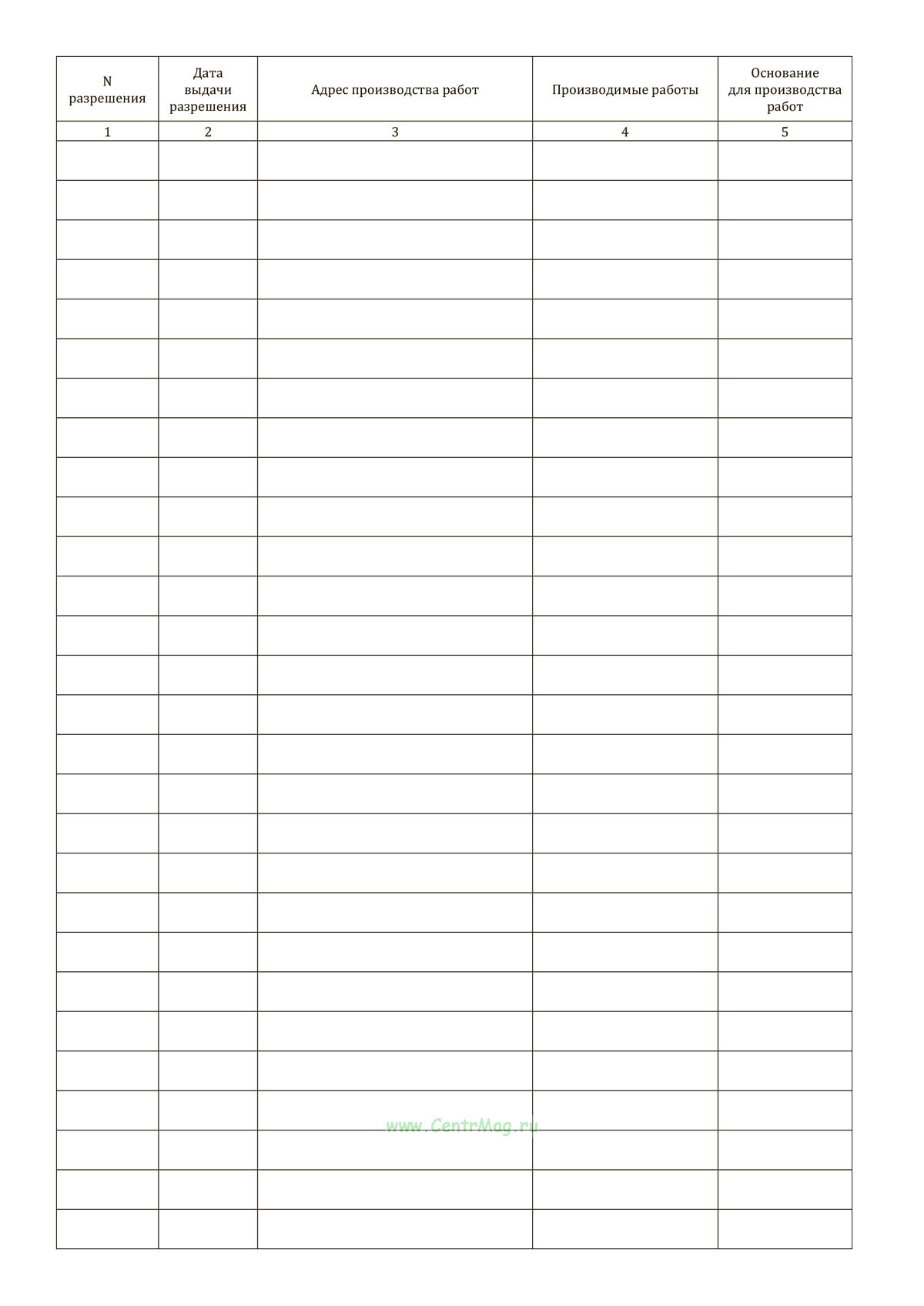 Графы журнала регистрации разрешений на проведение работ в охранных зонах сети газораспределения: