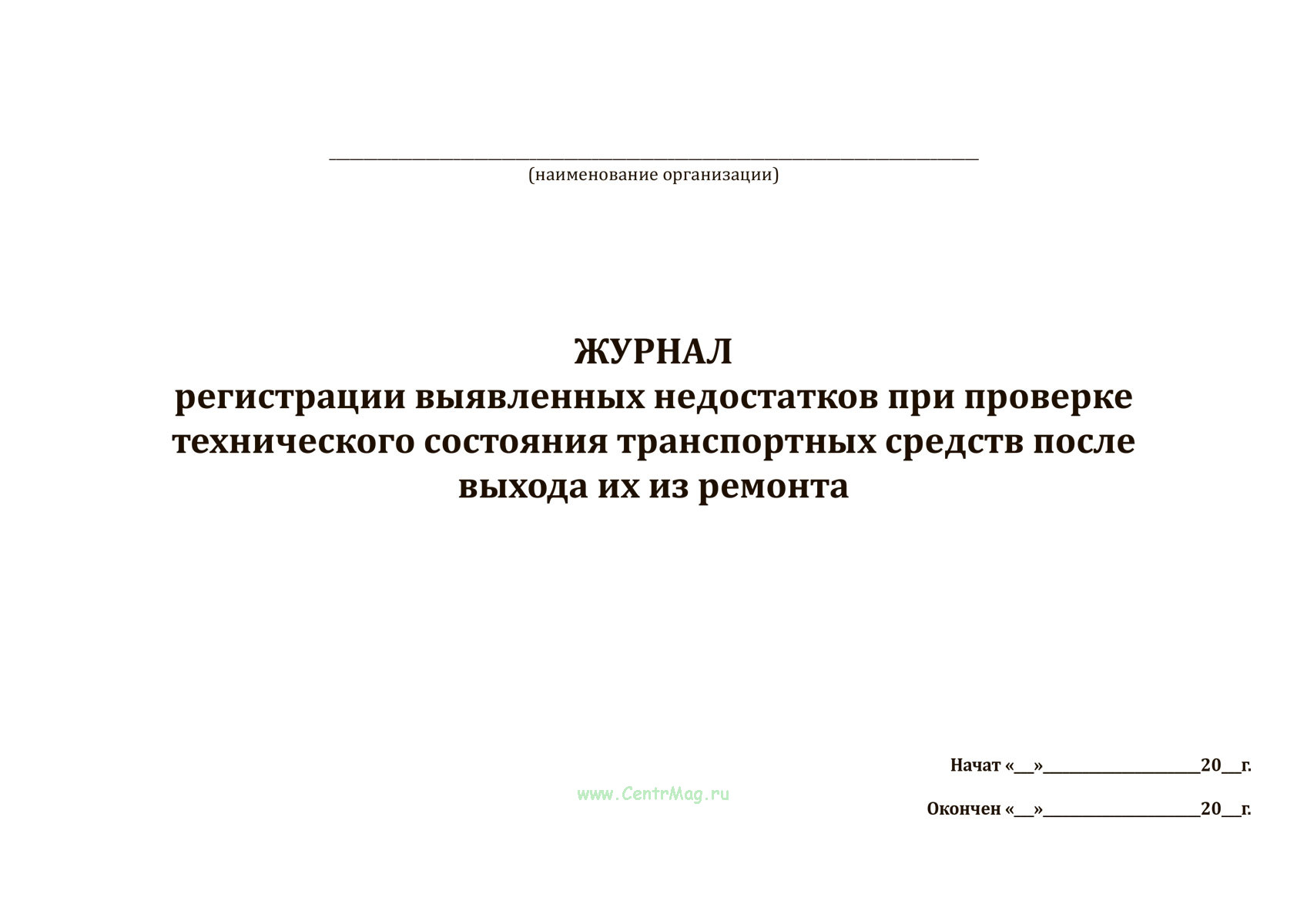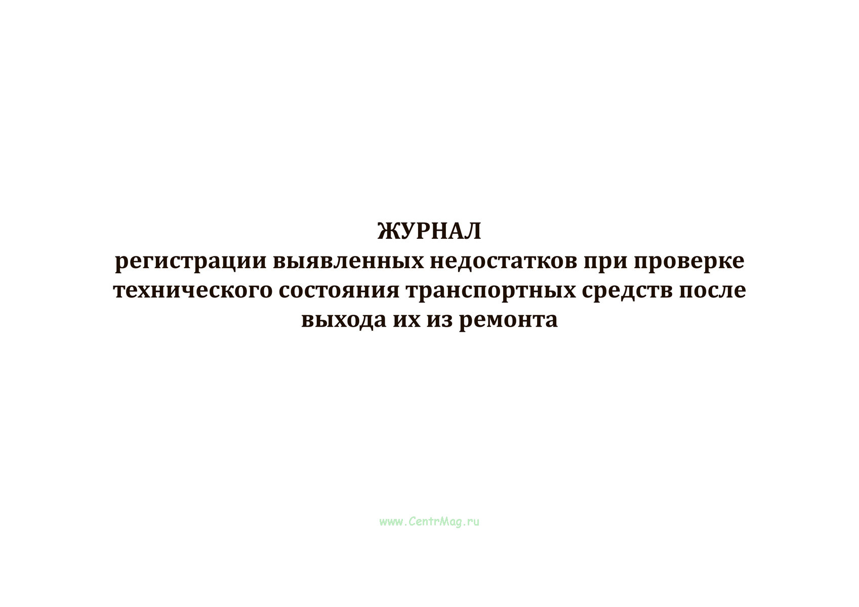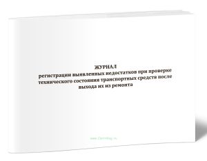 Также в продаже есть Журнал регистрации выявленных недостатков при проверке технического состояния транспортных средств после выхода их из ремонта с другими графами.