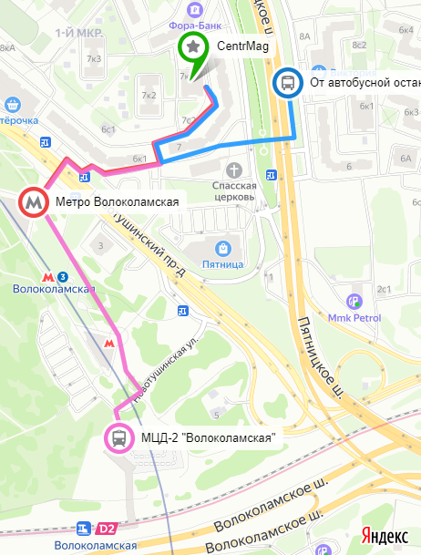 Станция метро Волоколамская (первый вагон из центра). Перейти на другую сторону Митинской улицы по подземному переходу, повернуть направо и идти вдоль дома. В конце дома нужно свернуть налево во двор. Наш офис находится в подвале одноэтажного нежилого здания во дворе жилого дома Пятницкое шоссе д. 7.